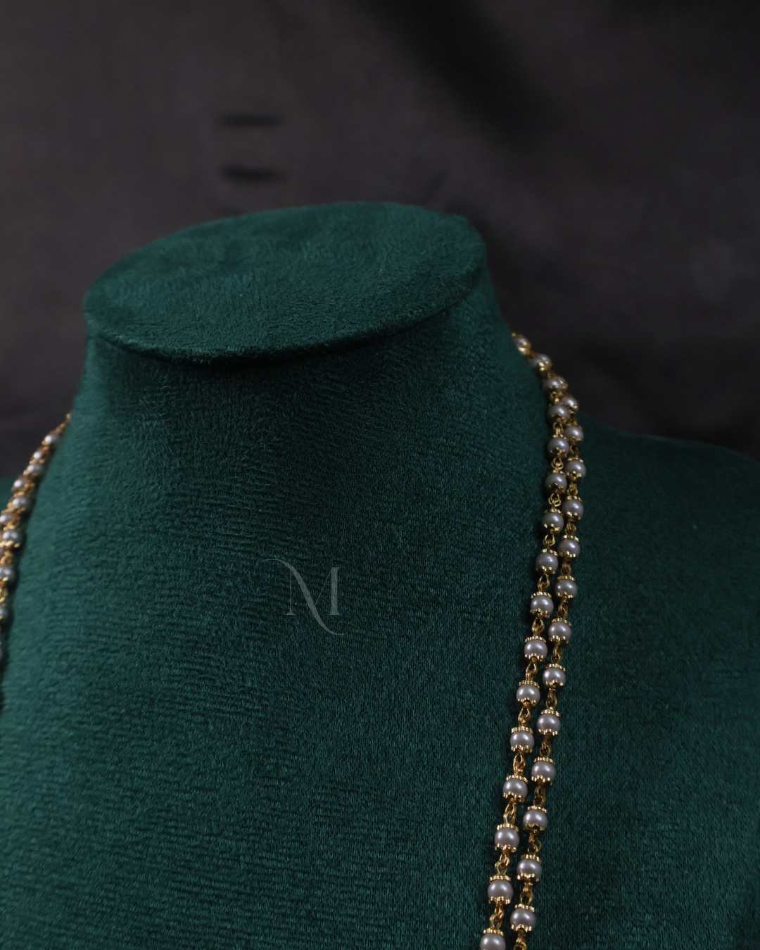 This exquisite dual-layer necklace showcases a harmonious blend of lustrous pearls and polished gold-toned beads, intricately linked to create a timeless design. Perfect for weddings, festive occasions, or adding a touch of sophistication to everyday attire, its versatile style complements both traditional and contemporary outfits.