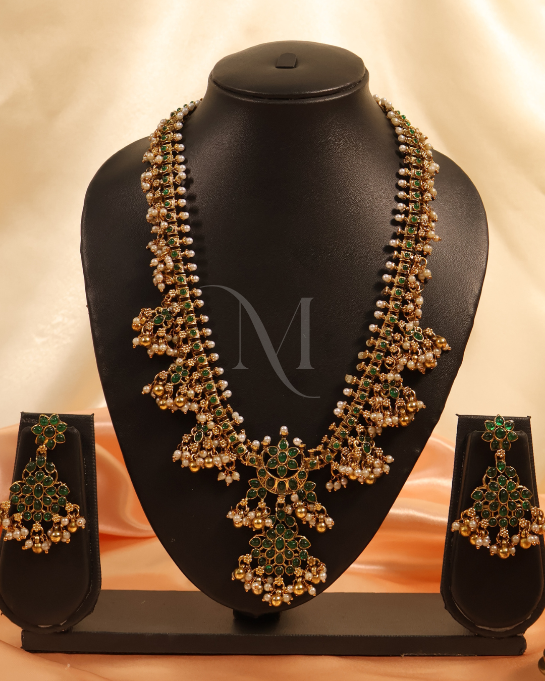 silhouette that’s balanced by soft pearl drops and gold-toned