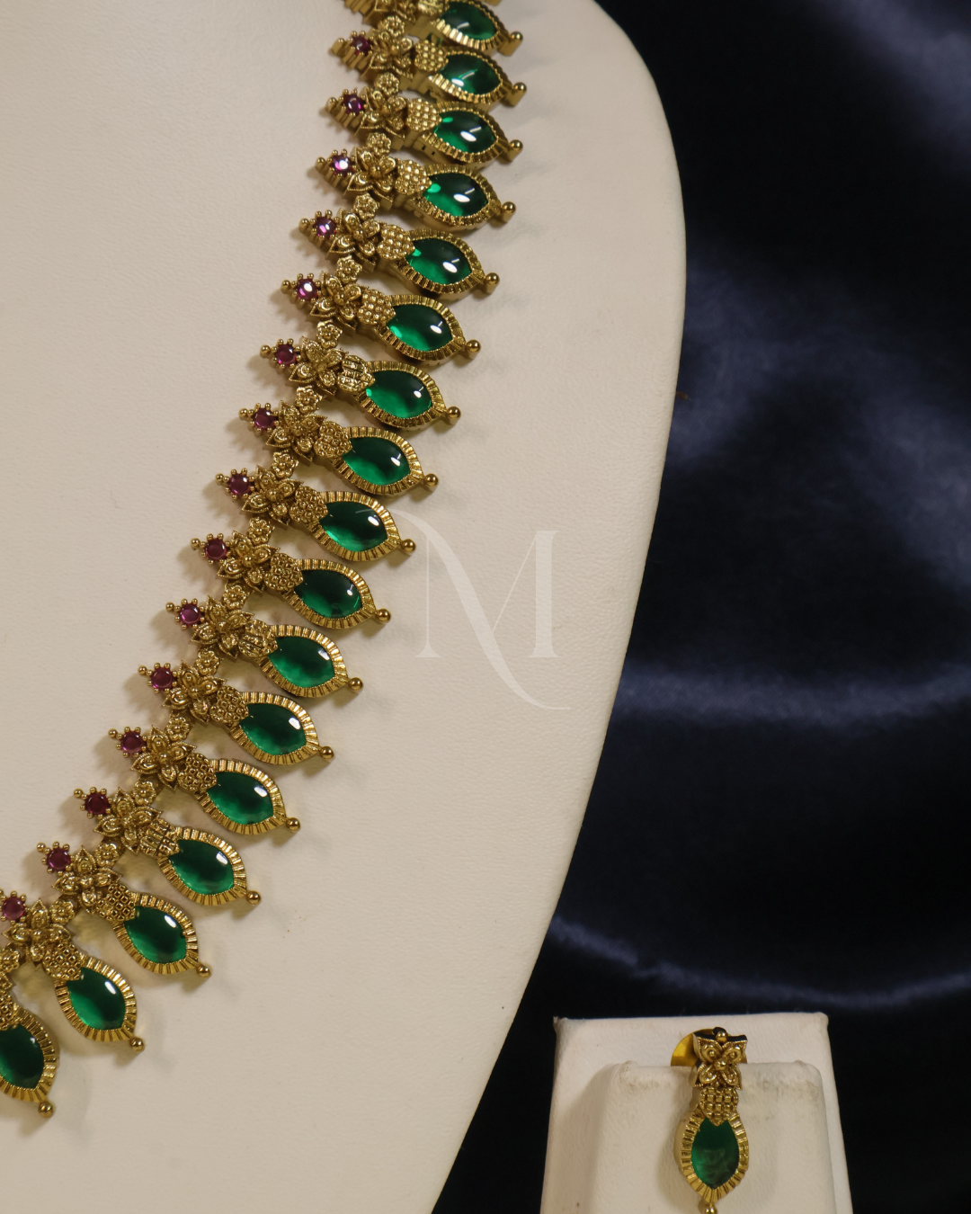 Design: Traditional mango haram with ruby detailing