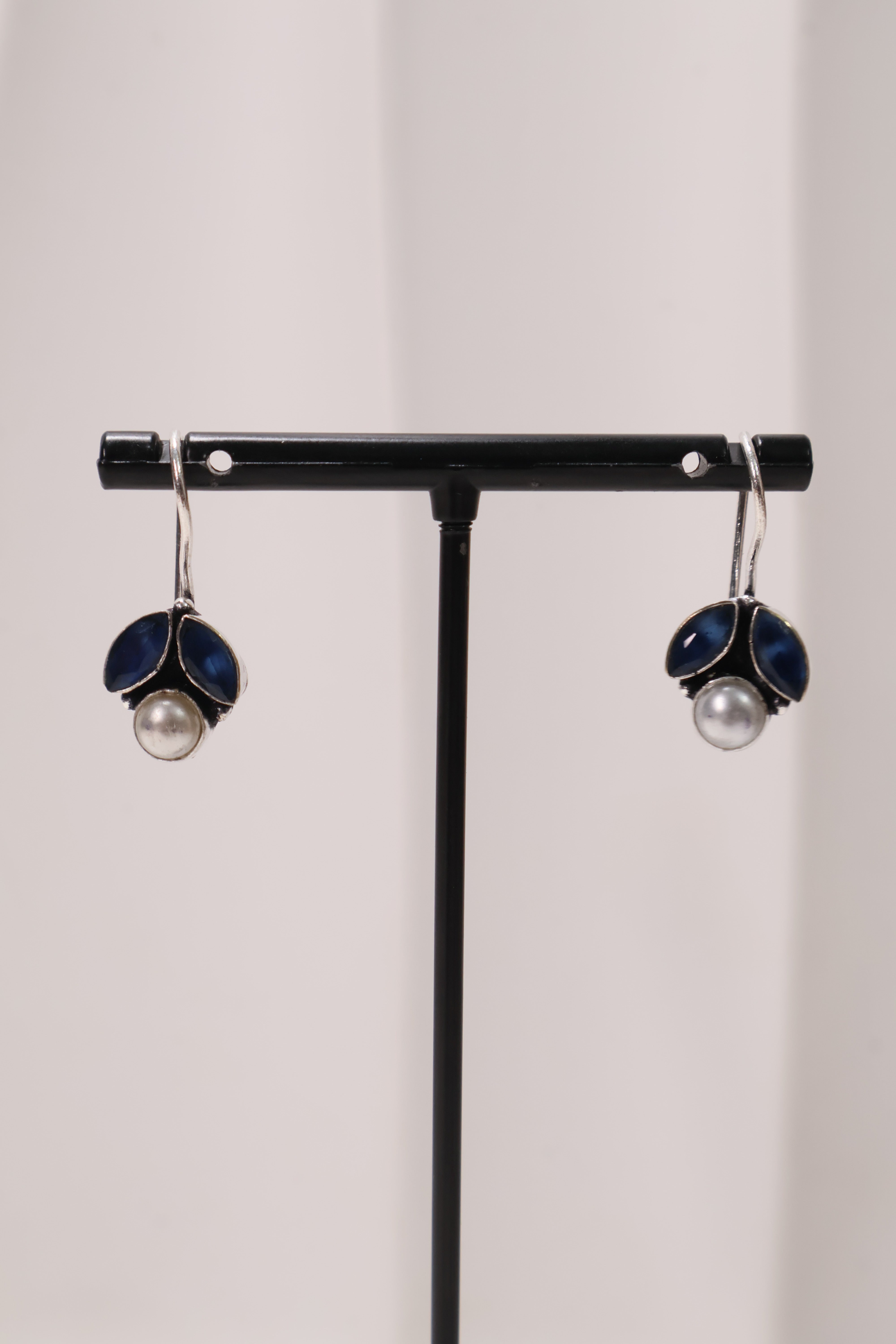 These graceful earrings feature a delicate floral-inspired design with deep black petal-shaped stones encasing a lustrous pearl drop. Crafted in a sleek silver-tone finish, they exude sophistication and charm. Perfect for both formal and casual occasions, these earrings effortlessly add a refined touch of color and elegance to any outfit.